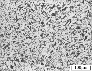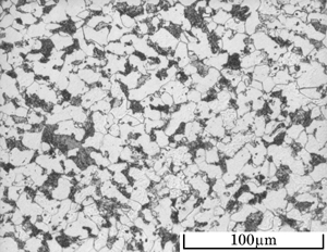 | フェライト(白)+パーライト(黒)。 S20Cよりもさらにパーライトが多くなっている(炭素量の増加)。 | ||