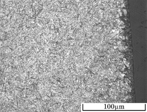 | 表面近傍は若干の残留オーステナイトを含む焼戻マルテンサイト。 表面には粒界酸化が認められる。 | ||
