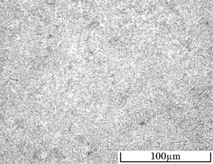 | 焼戻マルテンサイト+析出炭化物(黒粒)。 未溶解炭化物(白粒)が若干ある。 | ||