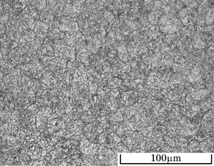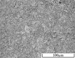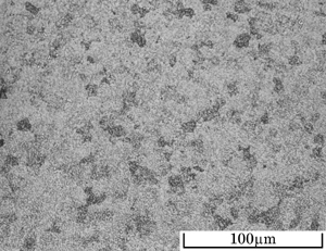 | フェライト+球状炭化物。 結晶方位が異なるため腐食に濃淡がある。 | ||